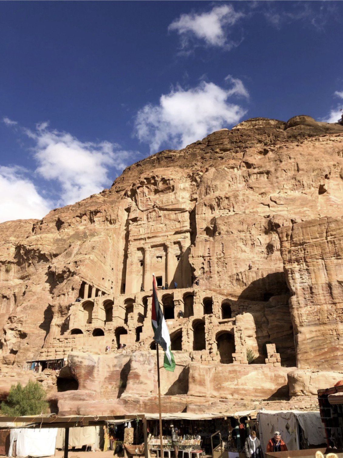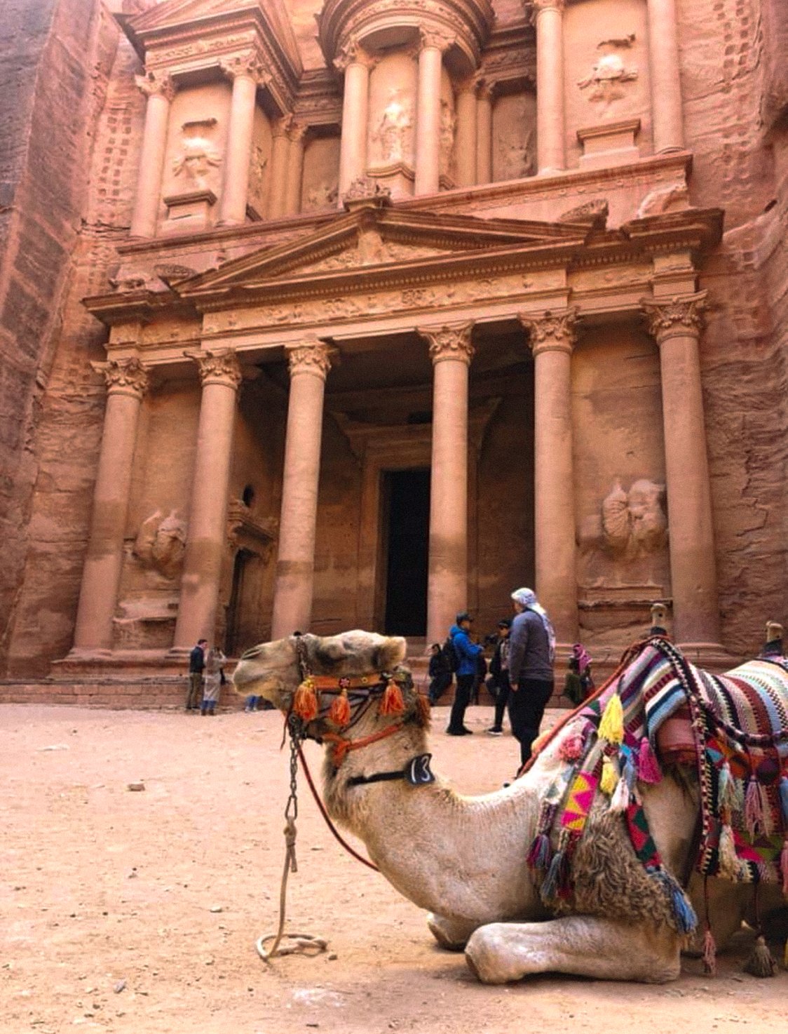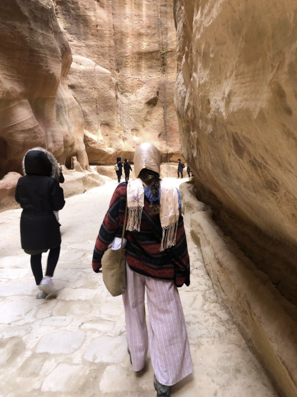 The signage in Aqaba is a little confusing when you’re first there. If you’re looking for a specific restaurant or business sometimes the sign advertising for it will be on the nearest street corner or much smaller than you would expect. The first day we were in Aqaba we couldn’t find our hotel because the office for the hotel was in the city center but then the actual building with the rooms was in a different location down the street. After we located the office one of the employees walked down the street with us to show us where we were staying. On this walk, he made sure to inform us where the best restaurants and shisha bars were, and even bought us all a local tea from the coffee bar next to our flat. From Aqaba, we rented a car and drove to Petra, which was about a 2 hour drive. Coming from the Midwest, the Jordanian desert seemed pretty bare, but hidden within this desert are truly some gems, one of those being Petra. When you’re driving to Petra it will seem like you are driving into the middle of no-where for quite a while. It wasn’t until we walked up to the Petra ticket office did it really seem like we were there. Petra is MUCH larger than I was expecting it to be, so I would wear clothes that you can easily move around and walk in. While you’re there you have a few different options of transportation within Petra: walking, mule, or camel. If you haven’t ridden a camel before, take this opportunity and do it, it doesn’t get cooler than riding a camel through a city as old as the 5th century BC.